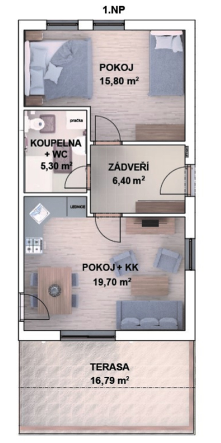 Moderní apartmán o velikosti 2+kk s terasou a podlahovou plochou 64 m² nabízí samostatný vstup, skvělou dopravní dostupnost, výhledy na přírodu Jeseníků.
