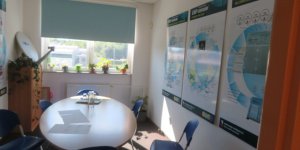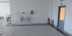 Administrativní budova je zděné konstrukce, okna jsou plastová, budova je zateplená a má klimatizaci. Nachází se zde zázemí pro zaměstnance, sklady, kanceláře a zasedací místnosti. Vnitřní dveře stavby jsou dřevěné plné a dřevěné prosklené. Podlahy jsou betonové pokryté PVC, koberci a keramickou dlažbou. Obklady jsou keramické. Vytápění zajištěno ústředním plynovým či elektrickým kotlem. Ohřev teplé vody zajišťuje bojler.